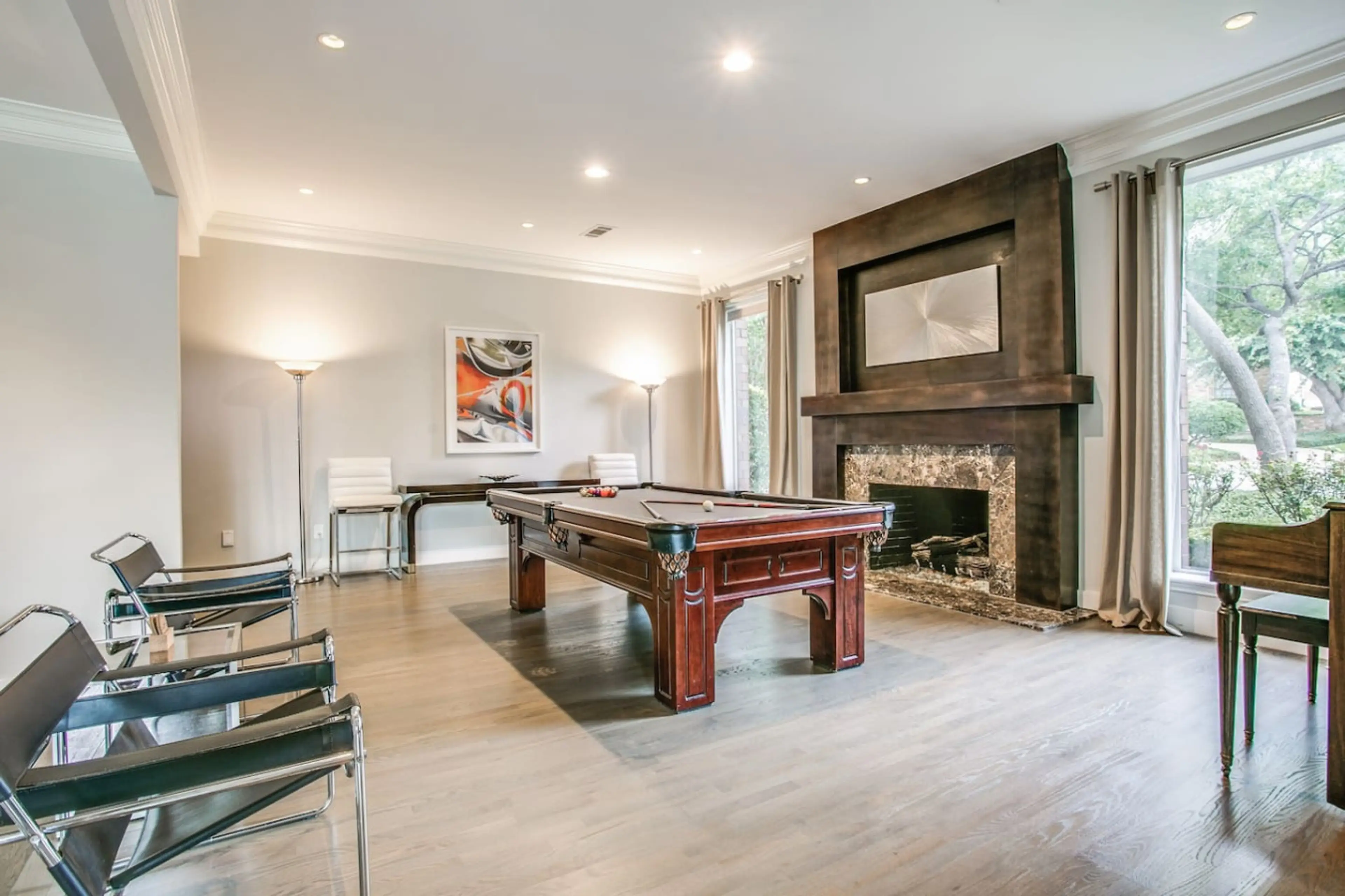 Indulge in sophistication just 9 miles from downtown Dallas! This contemporary marvel boasts 5000 sqft of open-concept luxury, featuring a grand pool, 12-person spa, 5 beds, 5.5 baths, gourmet kitchen, 9 HDTVs, billiards, 2 multi-person showers, and a sprawling master suite. Unparalleled entertainme...