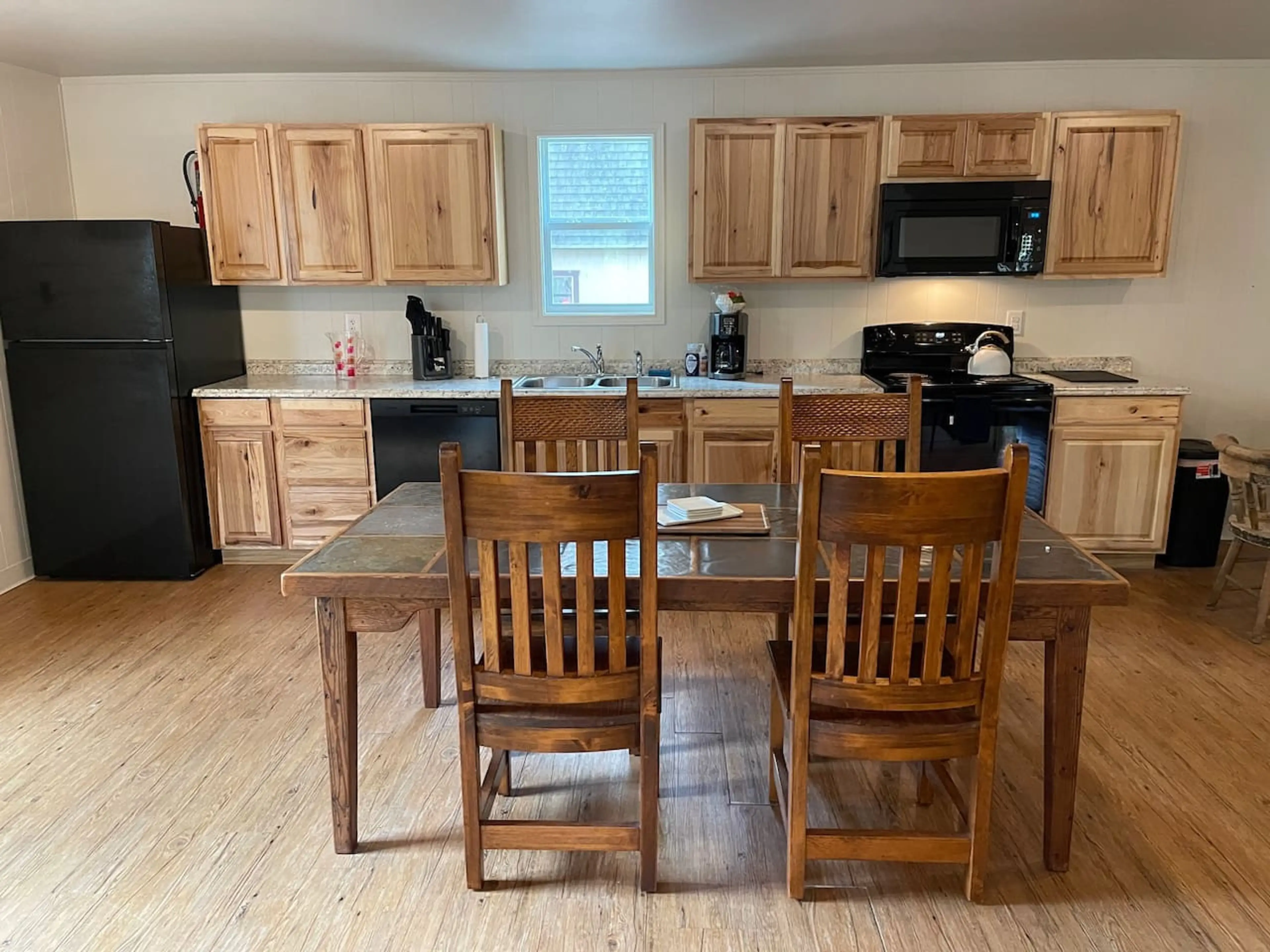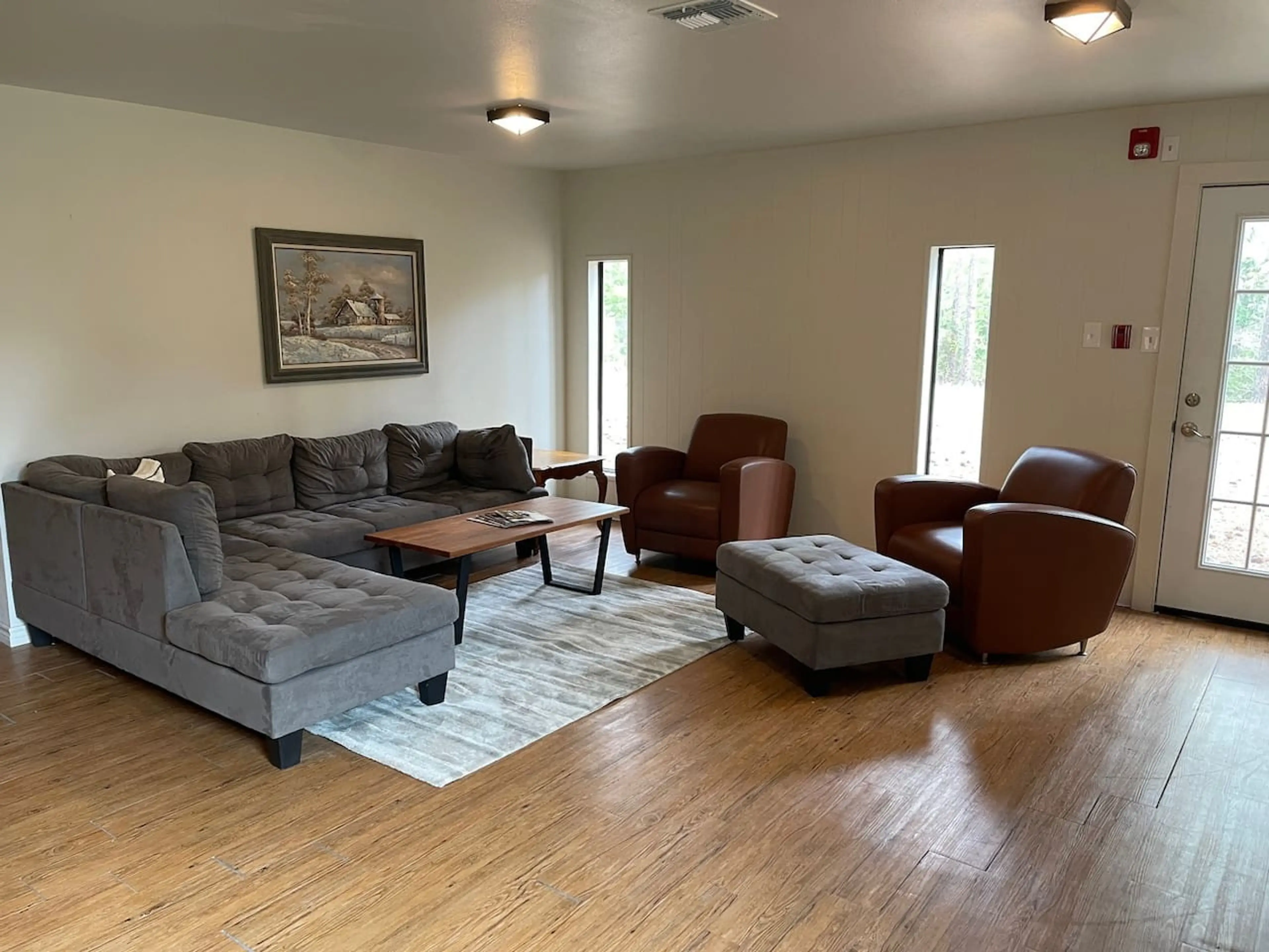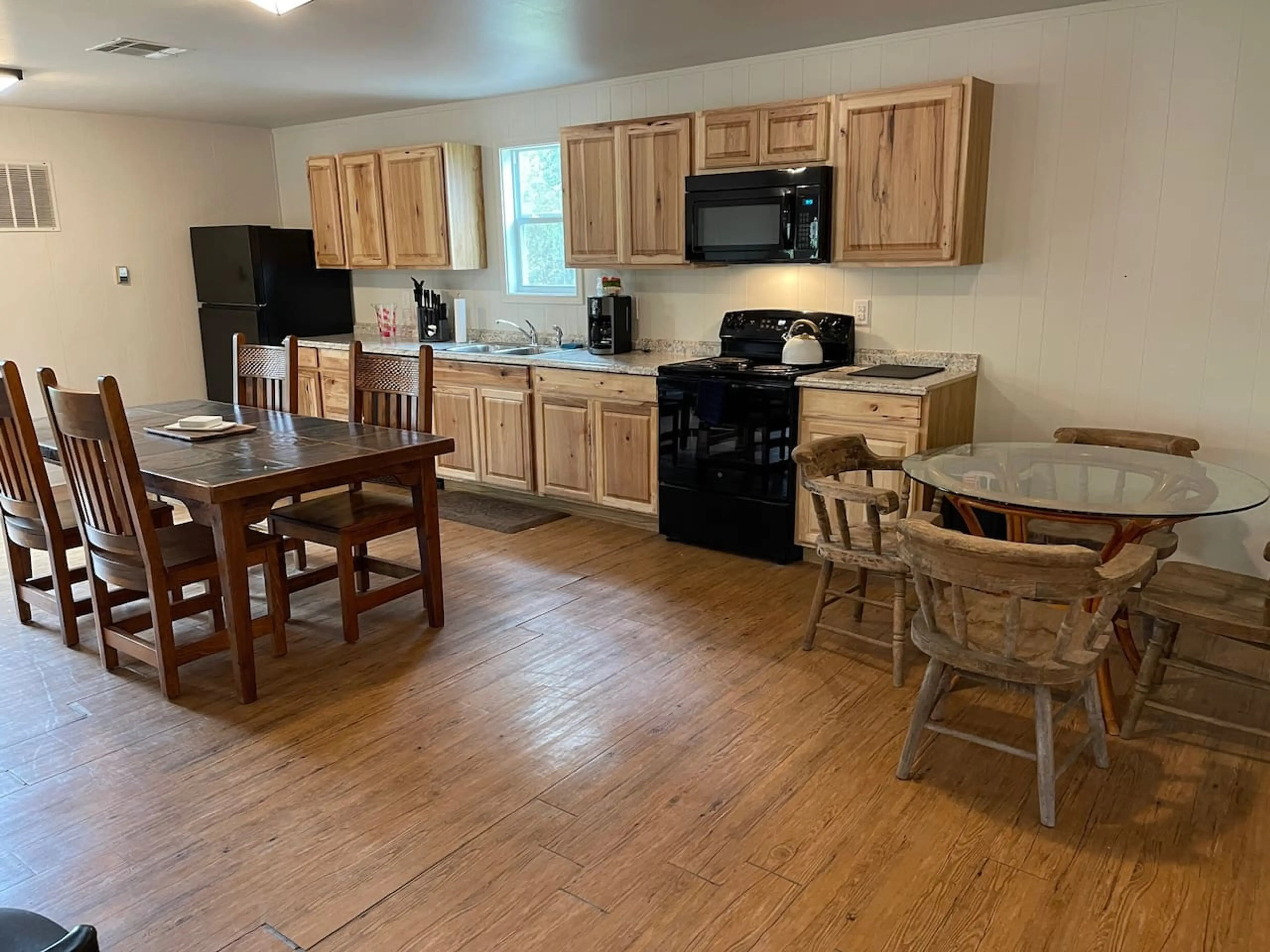 Yellow Rose Lodge is a spacious, open-concept lodge offering flexibility and room to spread out for group stays. Distinct in style from the log cabins, this yellow metal lodge provides a relaxed, functional setting designed for gathering and comfort. The main open room, accessed through its own ent...